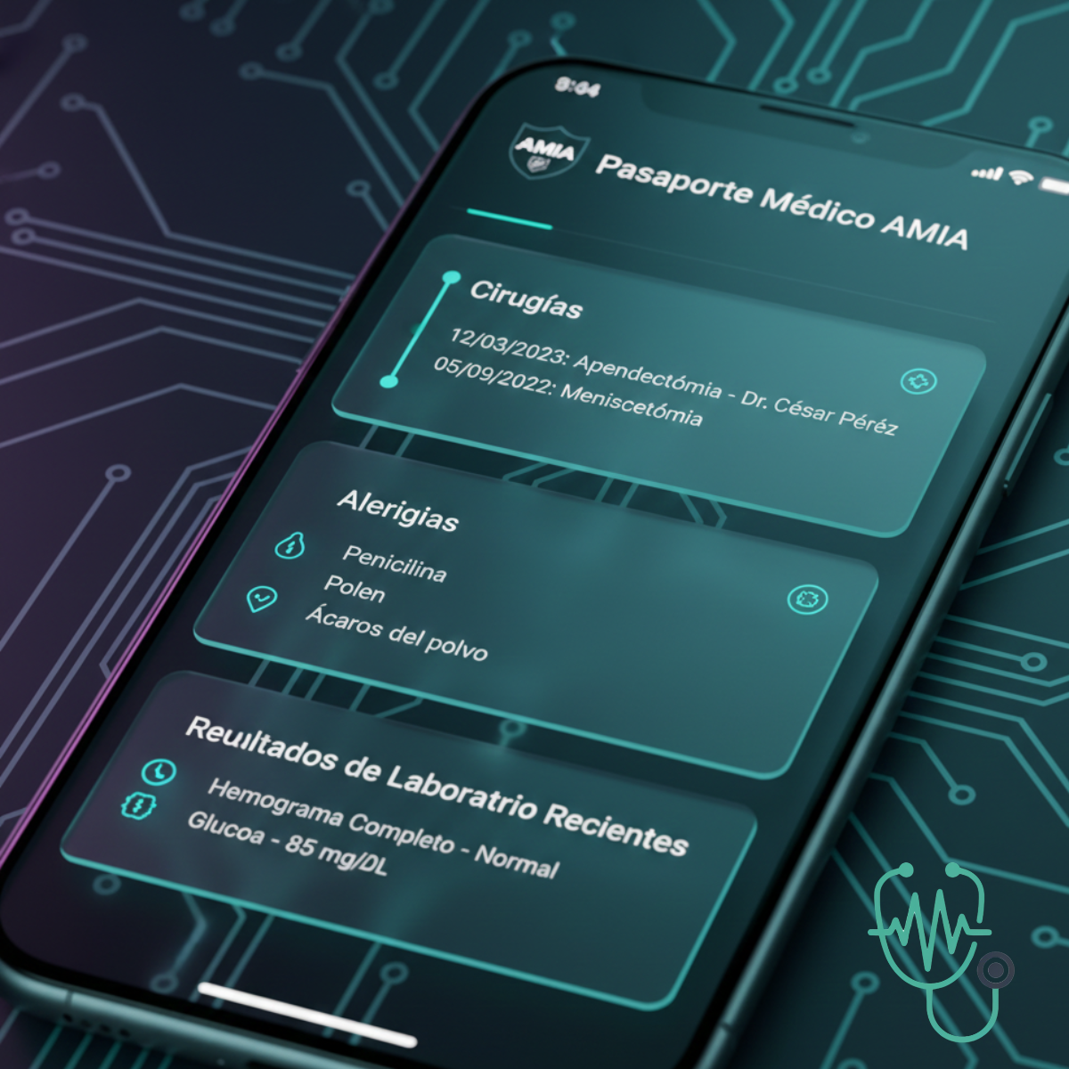 Ya no más carpetas perdidas. Ya no más recuerdos borrosos de cirugías pasadas. Solo datos reales, en tiempo real, en el lugar donde más se necesitan: el punto de atención. Porque en AMIA sabemos que la información médica que no es portátil, es información que no sirve cuando más se necesita.