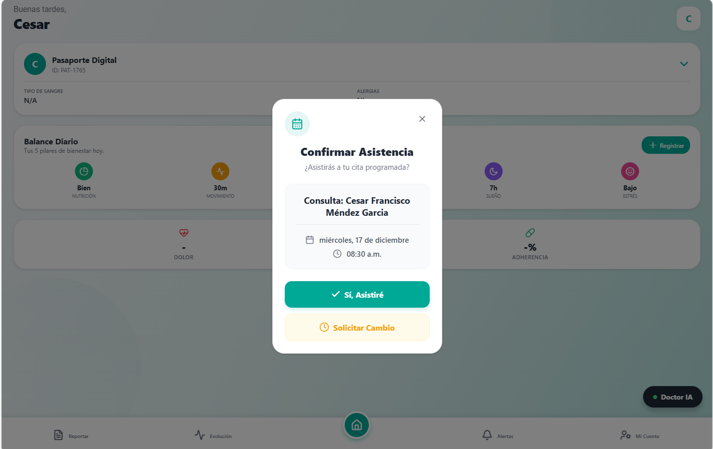 Nuestra IA detecta señales de alarma (fiebre, dolor excesivo) y notifica a tu doctor inmediatamente si algo anda mal.